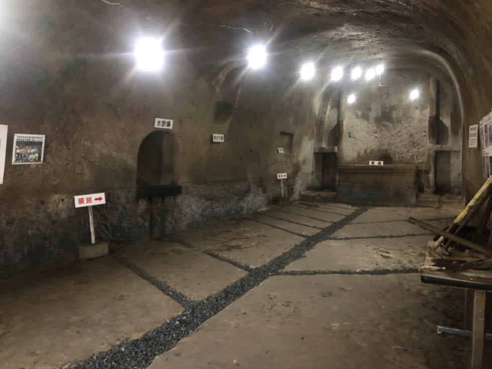 1943年第二次世界大戦のさなか、当時の宮村国民学校の教師と小学生たちが掘った巨大な防空壕です。 天井は小学生が手で掘ったとは信じられないほどの綺麗なアーチを描いています。 防空壕に避難しても授業や生活が出来るように教室や炊事場なども設けており、貴重な戦時中の背景を知ることができます。